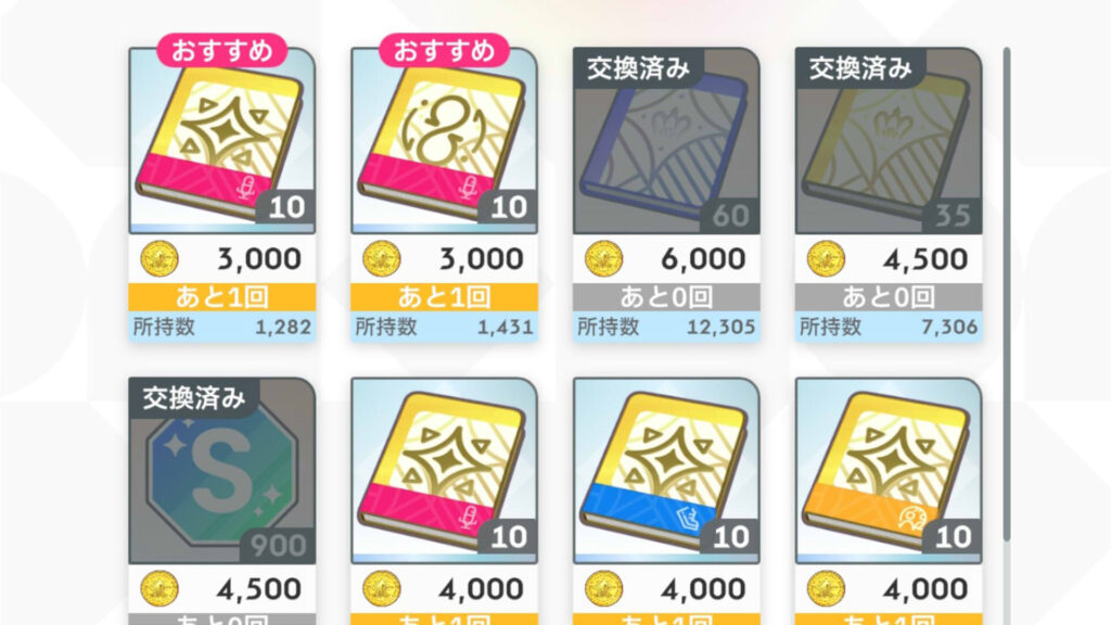 優先順位はサポート強化pt、ベテランノート、レッスンノート。