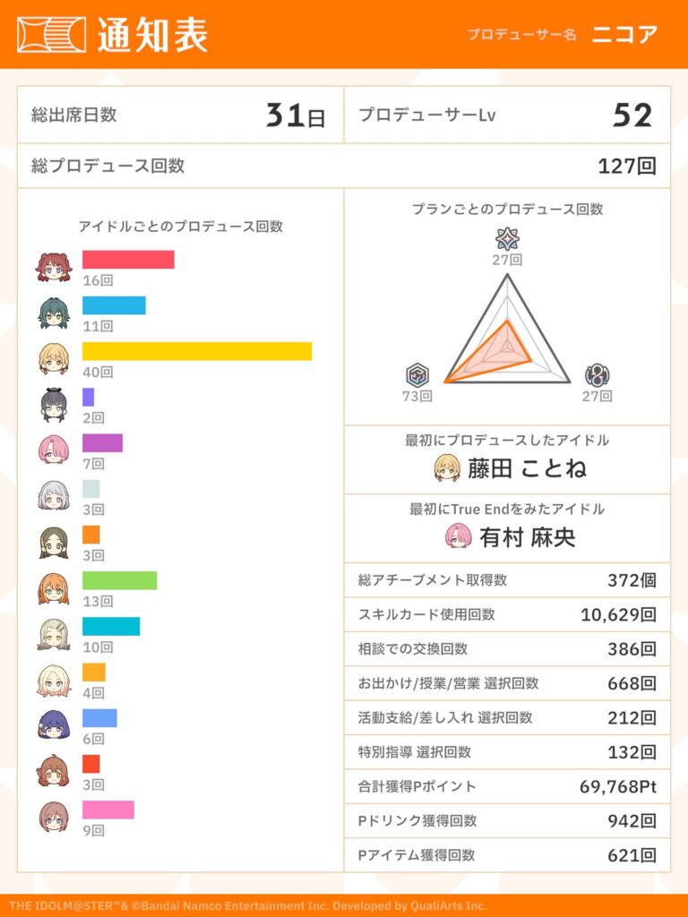 だいたい1ヶ月ほど学園アイドルマスターをプレイしたので、攻略の参考になりそうなことを軽く書いていきたいと思う(完全にエンジョイプレイヤー向け)。